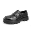 2025 autumn new large size double pin buckle loafers men's size 38-46 patent leather glossy thick heel thick sole heightening leather shoes