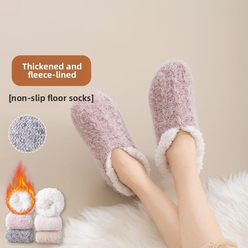 Floor Socks for Women, Home, Autumn and Winter, Thickened with Fleece, Warm Sleep Socks, Anti-slip Silicone Foot Warmer, Floor Socks