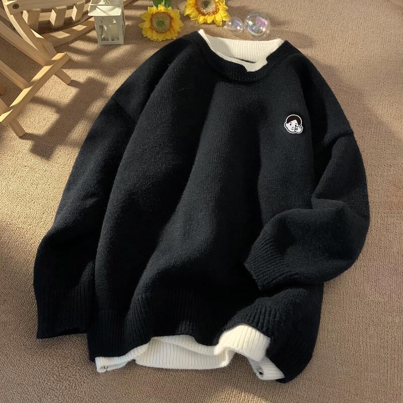 Męski sweter dzianinowy w japońskim stylu z efektem warstwowym