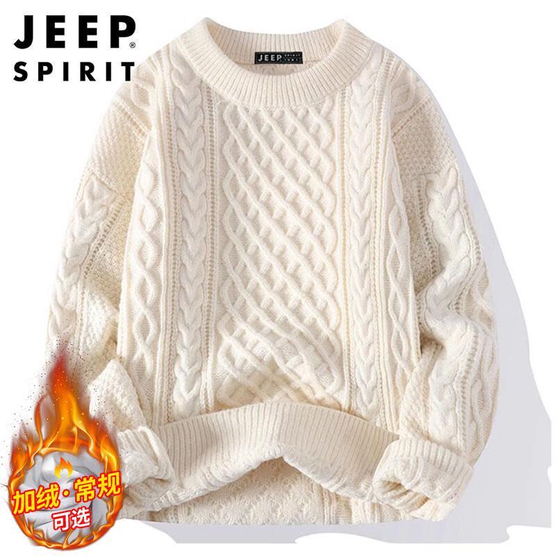JEEP SPIRIT Men's Cable Knit Crew Neck Sweater