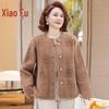 Elegant Mink Velvet Knitted Cardigan for Mid-Aged Women
