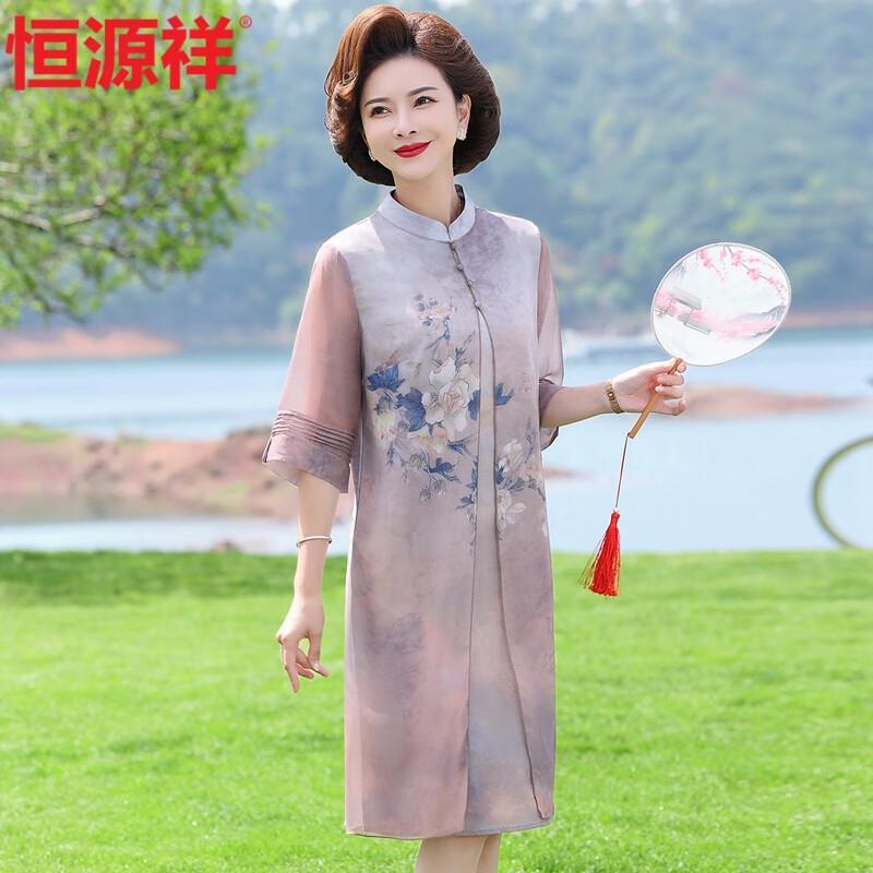 Hengyuanxiang Mid-Aged Women's Floral Cheongsam Dress