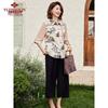 Yuzhaolin Women's Chinese Style Chiffon Seven-Quarter Sleeve Top & Shorts Set