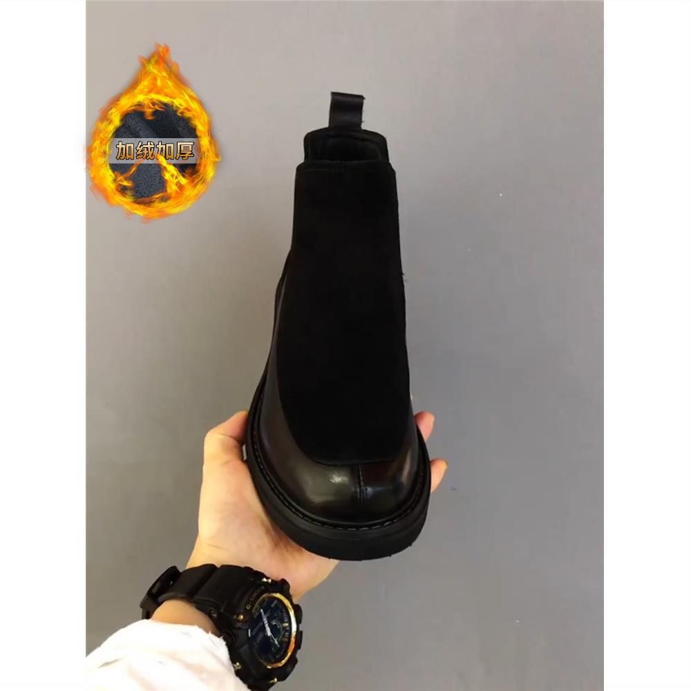 Botki Chelsea męskie jesienne w stylu brytyjskim wysokie skórzane na platformie botki typu cigarette modne męskie wsuwane botki Martin