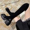 Czarne zamszowe elastyczne kozaki damskie zima 2025 nowe kozaki do kolan na grubej podeszwie i grubym obcasie cienkie kozaki skarpetkowe długie kozaki