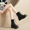 Miękkie skórzane ażurowe modne botki damskie na grubej podeszwie nowe letnio-jesienne ażurowe oddychające botki siateczkowe damskie buty podwyższające damskie