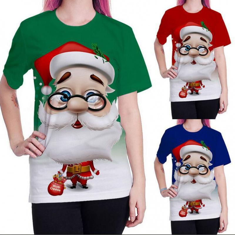 Letni T-shirt z nadrukiem Świętego Mikołaja, casualowy, modny, luźny, wszechstronny, wygodny, męski, damski