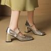 Sheepskin woven hollow sandals women's hole shoes leather shoes thick heel with Mary Jane shoes summer high heels