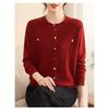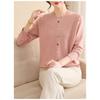 Modny sweter z długim rękawem, dojeżdżający do pracy, z okrągłym dekoltem, koszulka bazowa, top z guzikami i nitkami dla kobiet