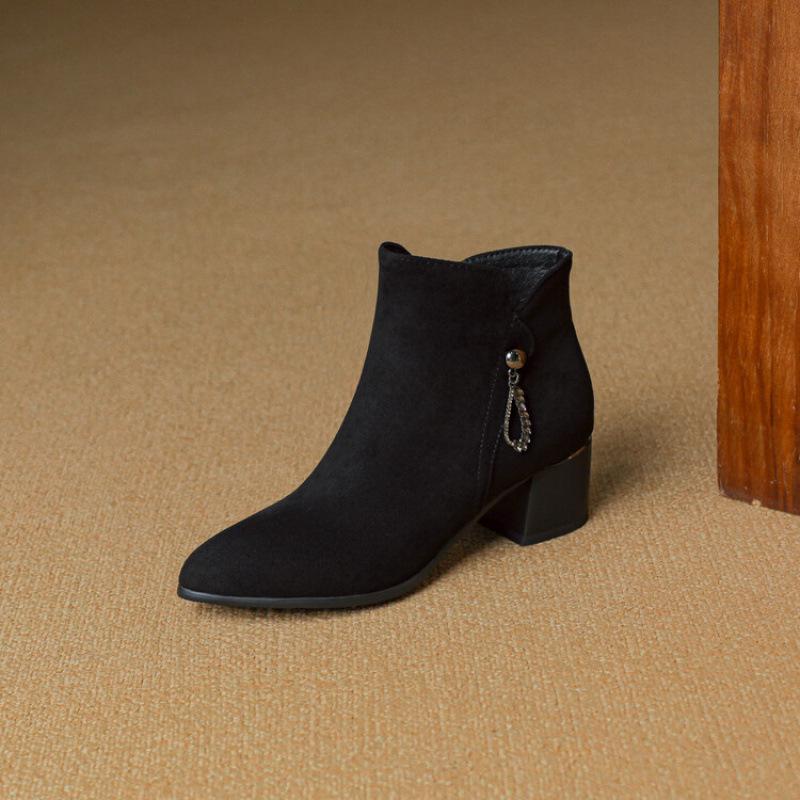 Autumn and winter suede Martin boots women's medium heel large size side zipper comfortable square heel leather boots Korean version of the new me