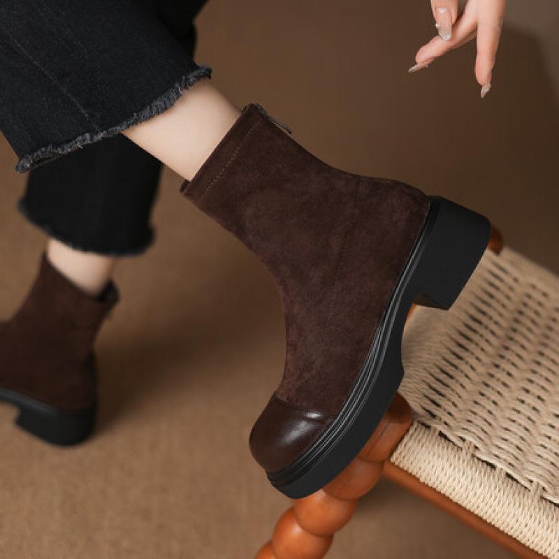 Autumn and winter women's suede Martin boots thick sole non-slip low heel large size medium tube women's boots square and Korean version square head