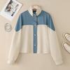 ZANZEA Women Casual Stand Collar Long Sleeve Patchwork Cardigan Blouse