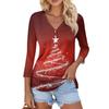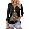 Damska Casualowa Moda Seksowna Wygodna Świąteczny Nadruk Dekolt w Serek Guziki Rękaw Trzy Czwarty Top
