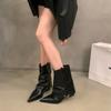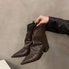 Thick Heel Pointed Pants Boots Fried Street Short Boots Women's Autumn New Brown Retro British Western Cowboy Boots