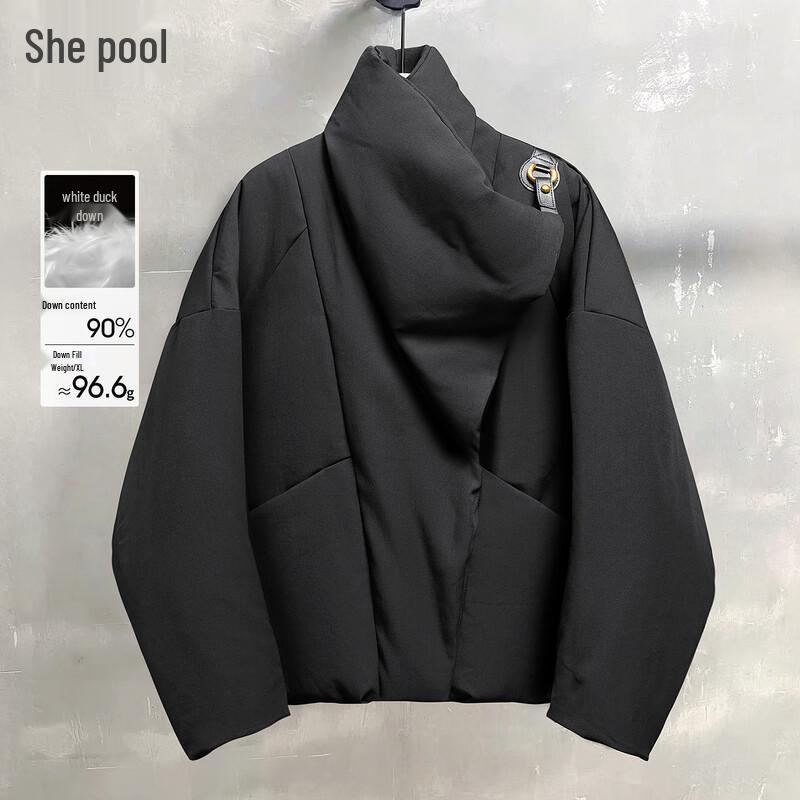 Damska krótka kurtka puchowa z dużym kołnierzem, 90% puchu