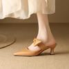 Summer women's bag head slippers casual high-heeled slippers women's black pointed cool slippers new foot cover rubber soft sole
