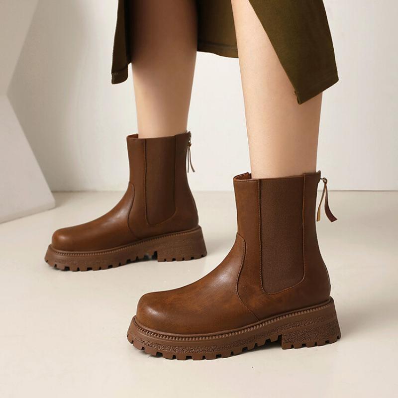 New women's fashion boots European and American large-size shoes platform sleeve rubber middle heel round head autumn and winter mid-tube boots