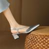 Summer new pointed back empty sandals women's rubber soft sole size women's shoes casual middle heel solid color bag head sandals