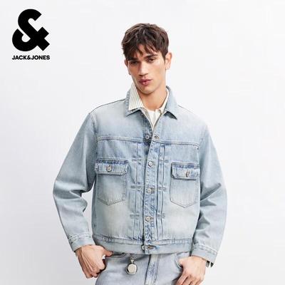 JACK&JONES Men's Stand Collar Loose Fit Denim Jacket