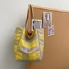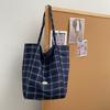 Casual relaxation large-capacity bag women's 2025 new autumn and winter canvas plaid shoulder bag double-sided tote bag