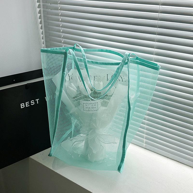 Wiosna 2025 nowa torba na zakupy przezroczysta torba modna na ramię siatkowa torba-wiadro duża pojemność mała świeża torba tote