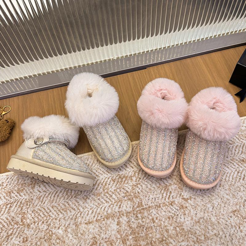 Snow boots female treasure 2025 winter new velvet thickened warm baby girl winter shoes princess non-slip soft sole girl