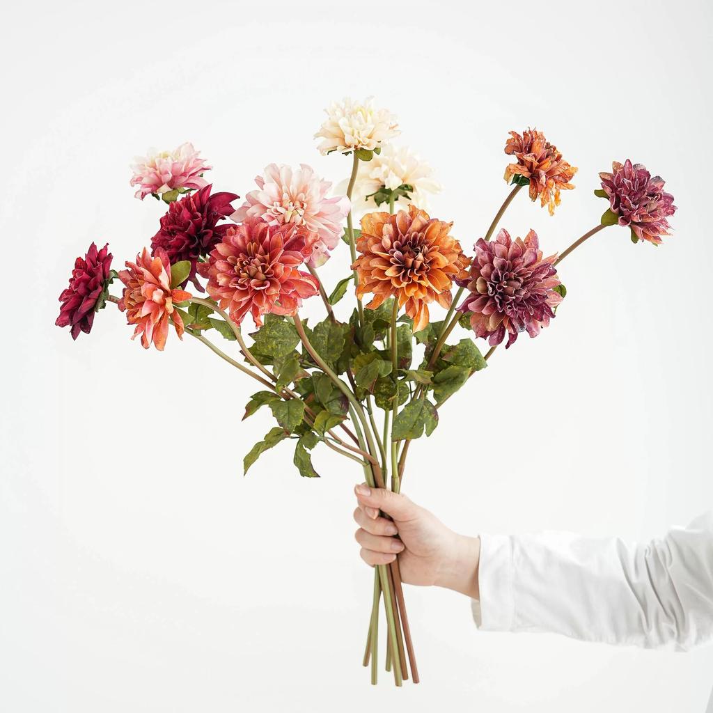 Jesienne Sztuczne Kwiaty Dalii Dekoracja Vintage Przypalane Krawędzie Jedwabne Kwiaty do Domu Dekoracja na Ślub Jesienna Tematyka Centralne Elementy