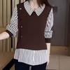Koszulka z długim rękawem Modna łączona w paski Casualowa odmładzająca bazowa góra
