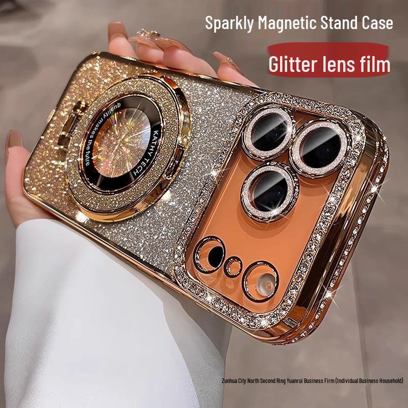 Elevate your iPhone 17 Pro Max experience with this stylish and functional accessory. This case is crafted from durable TPU, ensuring reliable shock protection. Its sophisticated design features dazzling rhinestone glitter, adding a touch of glamour to your device. The magnetic stand offers convenient hands-free viewing, while the included lens film provides extra defense for your camera. With its drop-proof and shockproof features, this case combines fashion with essential protection for your phone. Enjoy peace of mind knowing your device is safeguarded in style.