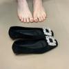 French square head rhinestone square buckle thick heel single shoes with skirt 2025 autumn new commuter low heel Mary Jane shoes women
