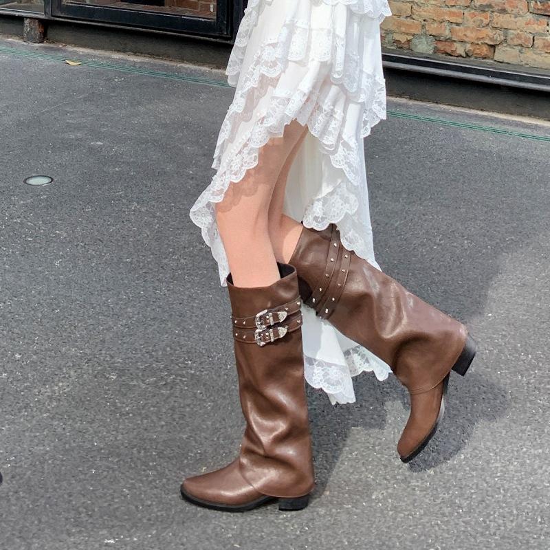 2025 autumn and winter new long boots thick heel fashion boots belt buckle trouser boots high boots medium heel women's boots western women's boots