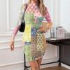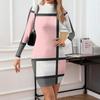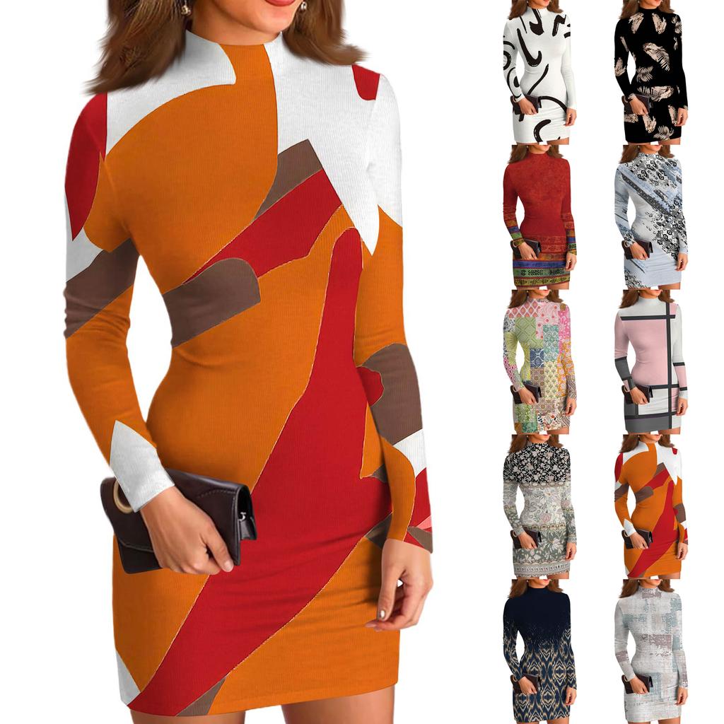 Damska sukienka codzienna z wysokim dekoltem, z długim rękawem, z nadrukiem, dopasowana