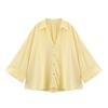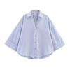Damska koszula casualowa w paski z mieszanki lnu z szerokimi rękawami z podwinięciem, asymetryczna, z wszechstronnym kołnierzykiem, drukowana