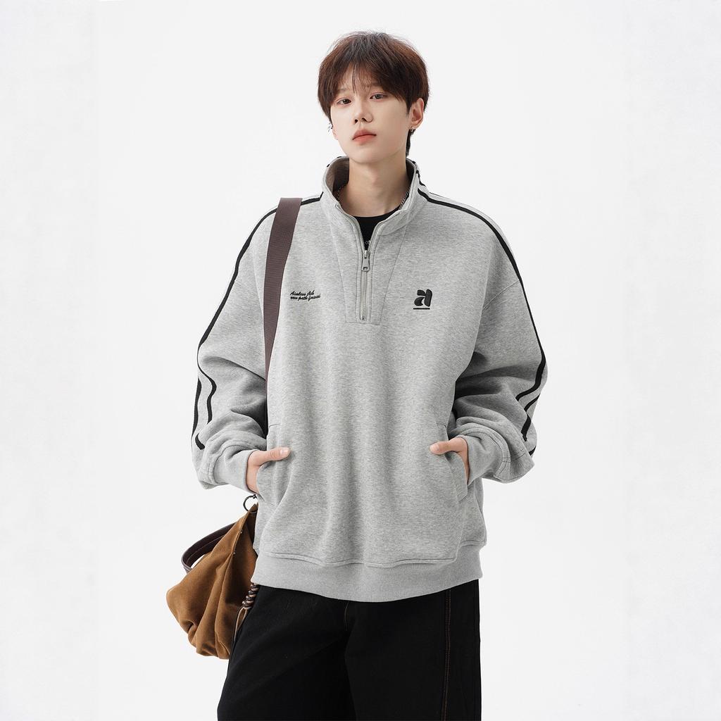Stand-up Collar Couple Sweater Men's Autumn Retro Half-zipper Top Design Sense Heavy Sports Jacket