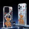 Kreskówkowy Miś Magnetyczne Etui na Telefon dla iPhone 15/16/17 Pro Max - Przezroczyste Pełne Pokrycie
