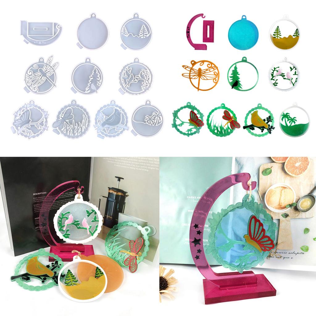 Photo Frame Pendant Silicone Mold Christmas Tree Butterfly Mold Epoxy Resin Moon Base Bracket Mold Suitable for Crafts