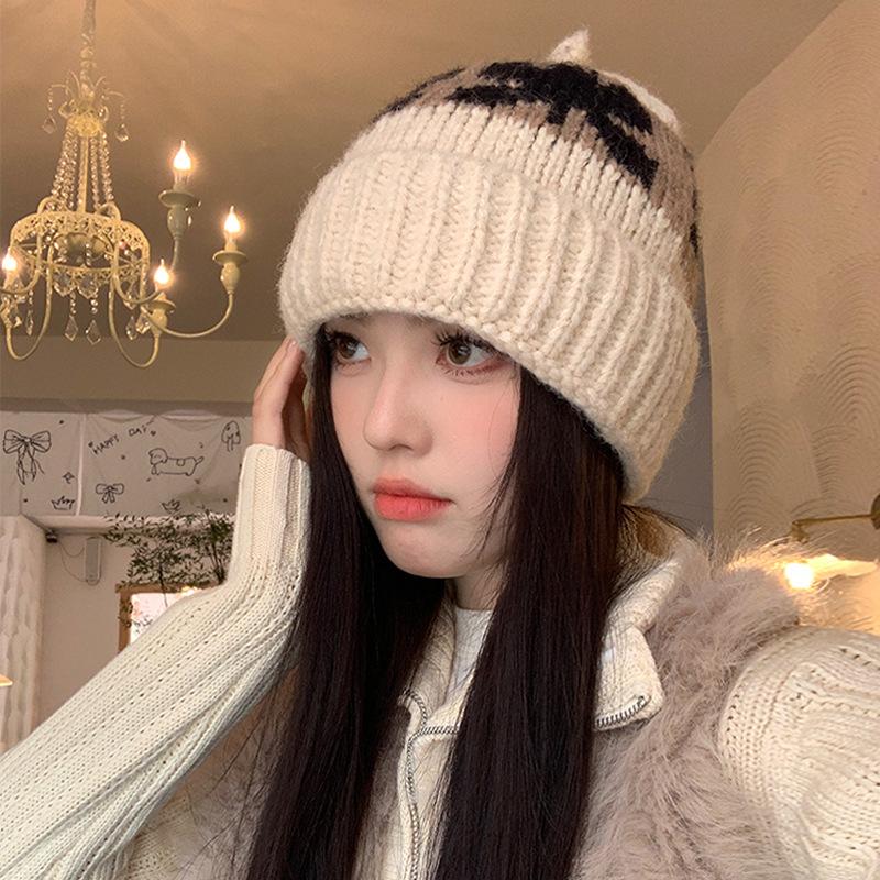 Retro Woolen Hat for Women in Autumn and Winter Large Head Circumference Face Showing Small Cold Hat Warm and Thickened Ear Protection Knitted Hat