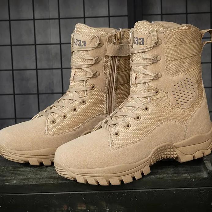 Męskie buty wojskowe trekkingowe i wspinaczkowe 2025: Wysokie, Gruba Podeszwa, Zamek Boczny, Odporne na Ścieranie, Antypoślizgowe, Duże Rozmiary Pustynne Buty Robocze.