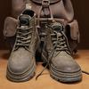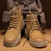 Men's Genuine Leather High-Top Martin Boots - Yellow Retro Winter Snow Shoes with Plush Lining