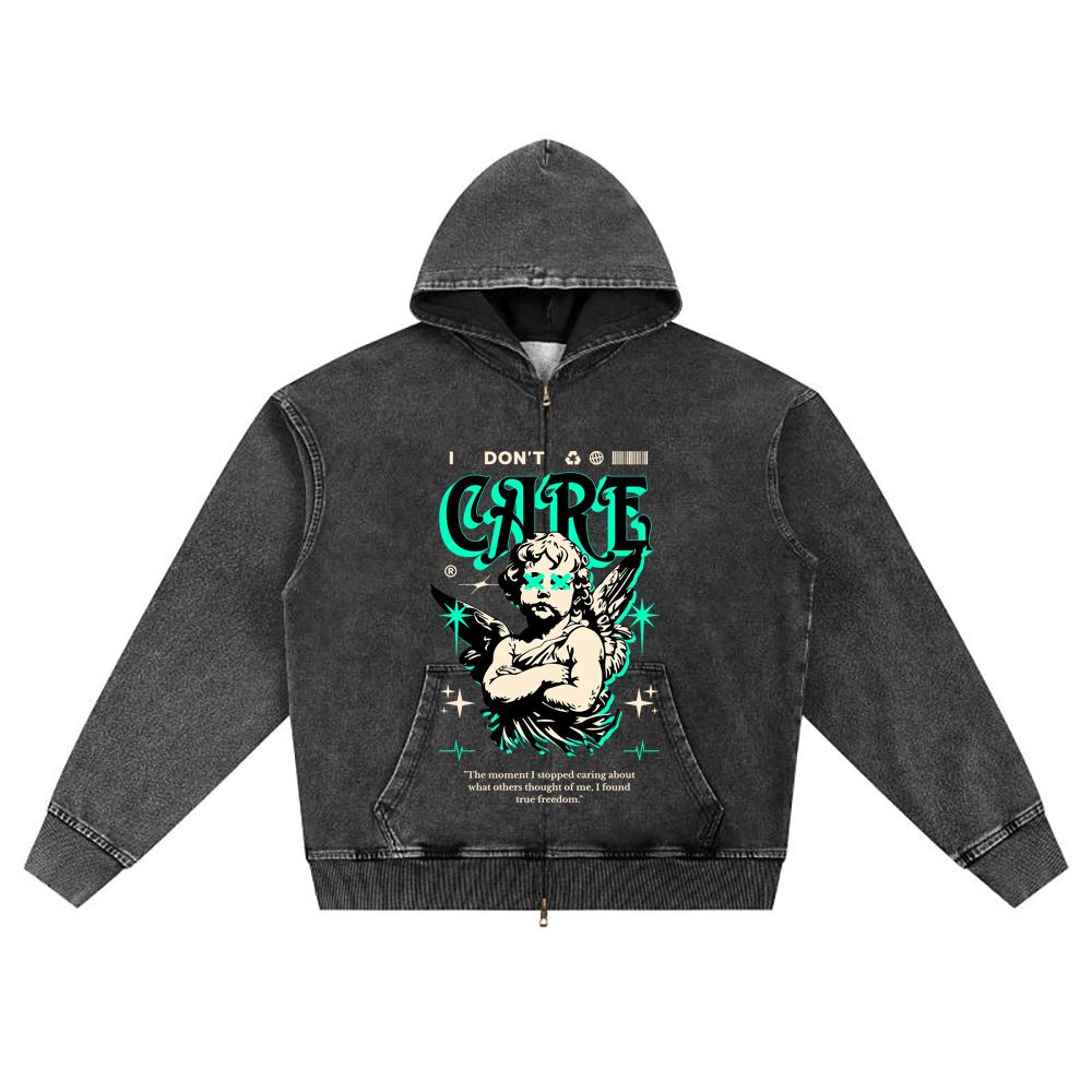 Nadruk DTG Dzianinowa Denimowa Bluza z Kapturem na Zamek Angel Streetwear Nadruk Brata Bluzy z Kapturem na Zamek