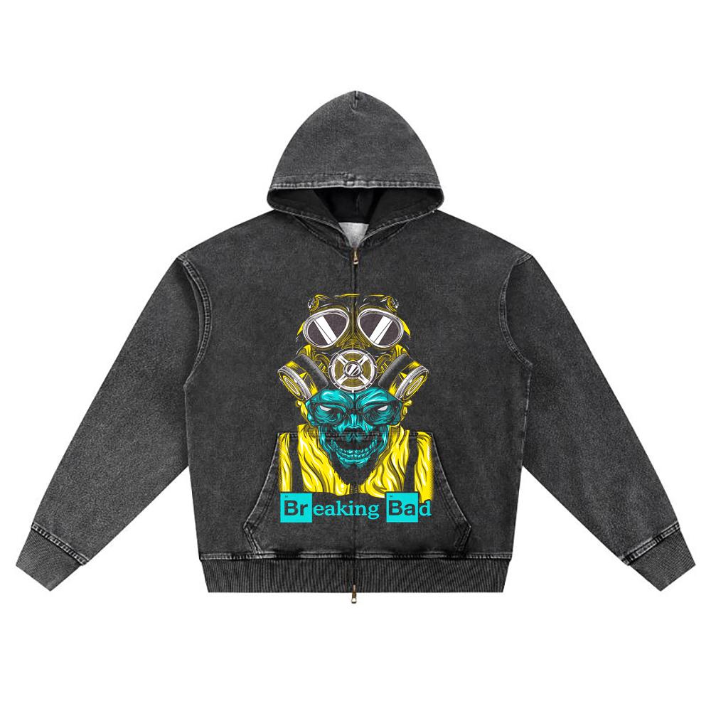 DTG print Knitted Denim Zip-Up Hoodie Breaking Bad Brother Print Zipper Hoodies