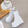 Wyjdź stylowo i wygodnie w tych damskich botkach do połowy łydki, idealnych na sezon jesień/zima 2025. Wykonane z najwyższej jakości skóry bydlęcej obuwie charakteryzuje się trwałością i eleganckim wyglądem. Koturnowy obcas dodaje wysokości, a jednocześnie zapewnia stabilność, dzięki czemu buty te nadają się na różne okazje. Wyposażone w wygodny boczny zamek błyskawiczny i sznurowane buty zapewniają bezpieczne i regulowane dopasowanie. Podeszwa z poliuretanu zapewnia wsparcie i przyczepność, idealną w każdych warunkach pogodowych. Wnętrze wyściełane sztuczną skórą zapewnia wygodę noszenia przez cały dzień. Te wyszczuplające buty idealnie łączą w sobie modę i funkcjonalność, dzięki czemu są uniwersalnym i ponadczasowym dodatkiem do Twojej garderoby.