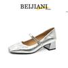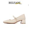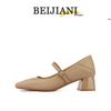 BEIJIANI Mary Jane na grubym obcasie ze skóry owczej - Damskie miękkie skórzane buty z jednym paskiem