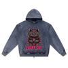 DTG print Knitted Denim Zip-Up Hoodie Lucky Cat Brother Print Zipper Hoodies