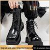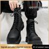 Męskie Czarne Skórzane Buty Motocyklowe z Grubą Podeszwą i Wewnętrznym Podwyższeniem – Styl Brytyjski, Wysokie Cholewki, Casualowe, Gotowe na Jesień.