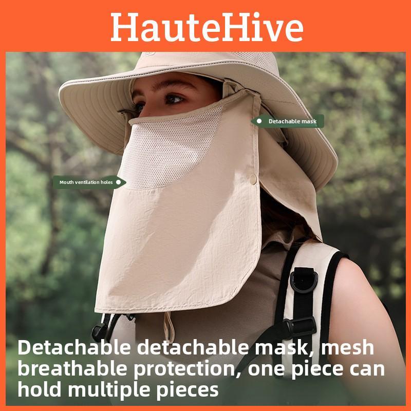 Summer Embroidered Minimally Sun Shading Fisherman Hat With Detachable Mask
