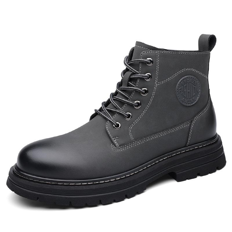 Doświadcz niezrównanego stylu i komfortu dzięki tym skórzanym butom typu high-top zaprojektowanym wyłącznie dla mężczyzn.. Idealne na sezon jesienno-zimowy, te buty łączą swobodny styl z modnym akcentem, dzięki czemu są idealne zarówno na motocyklowe przygody, jak i do pracy.. Wykończenie z efektem przetarcia koloru dodaje każdej parze unikalnego charakteru, a design podwyższający sylwetkę zapewnia subtelne uniesienie.. Wykonane z materiałów premium, posiadają trwałą gumową podeszwę dla optymalnej przyczepności i stabilności, cholewkę ze skóry PU dla eleganckiego wyglądu, poliuretanową wkładkę dla amortyzacji oraz luksusową skórzaną wyściółkę dla dodatkowego komfortu.. Urozmaić swoją garderobę tymi wszechstronnymi, wyznaczającymi trendy botkami.