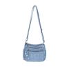 Dżinsowa torba z haftowanym napisem, wielokieszeniowa torba crossbody