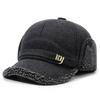 Jesienno-zimowa wełniana czapka baseballowa outdoorowa aksamitna gruba czapka dla mężczyzn w średnim wieku ciepła ochrona uszu pilotka