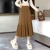 Dzianinowa plisowana spódnica damska jesienno-zimowa casualowa z wysokim stanem wyszczuplająca midi rozkloszowana spódnica A-line